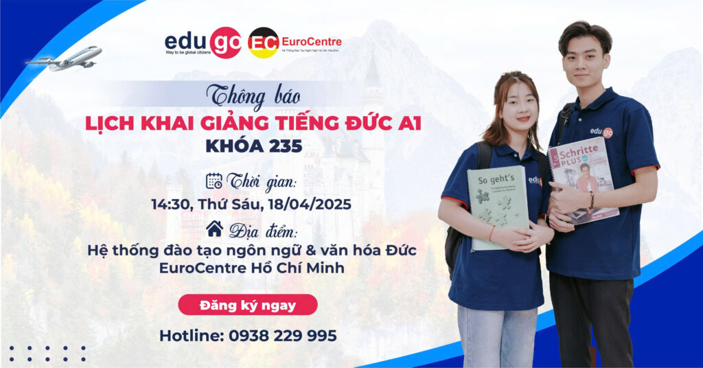 EuroCentre thông báo khai giảng lớp tiếng Đức trình độ A1 K235 dành cho người mới bắt đầu tại EuroCentre cơ sở đào tạo Hồ Chí Minh ngày 18/04, ĐĂNG KÝ ngay hôm nay!