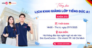 EuroCentre thông báo khai giảng các lớp tiếng Đức trình độ A1 tháng 11/2025