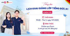 EuroCentre chính thức khai giảng các lớp tiếng Đức trình độ A1 dành cho người mới bắt đầu trong tháng 11 này. Khóa học được thiết kế dành cho mọi đối tượng yêu thích tiếng Đức, đặc biệt là những ai đang hướng đến mục tiêu phát triển học tập và sự nghiệp tại CHLB Đức.