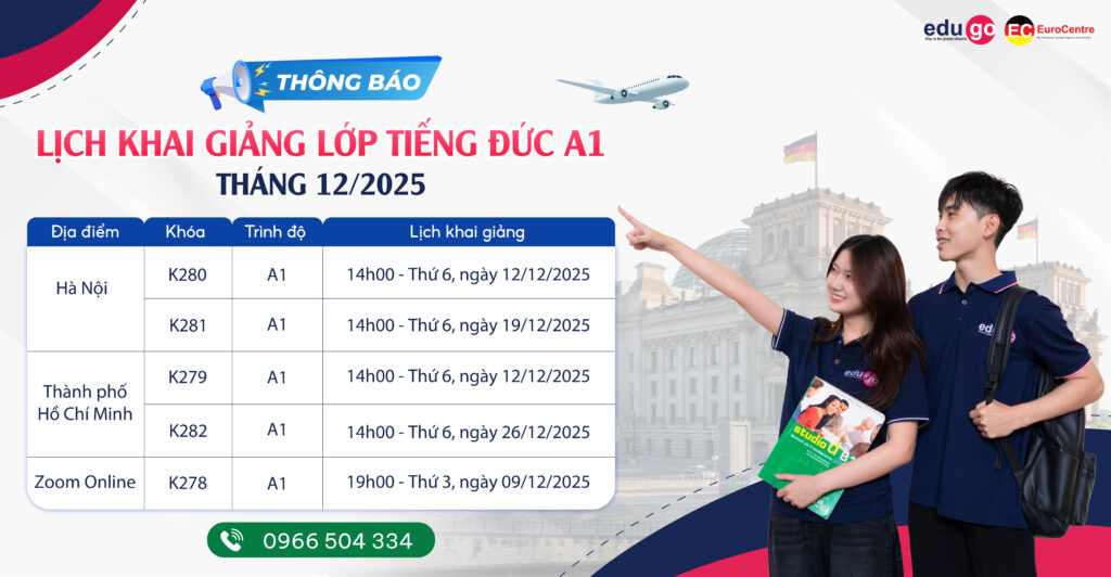 EuroCentre thông báo khai giảng các lớp tiếng Đức trình độ A1 tháng 12/2025