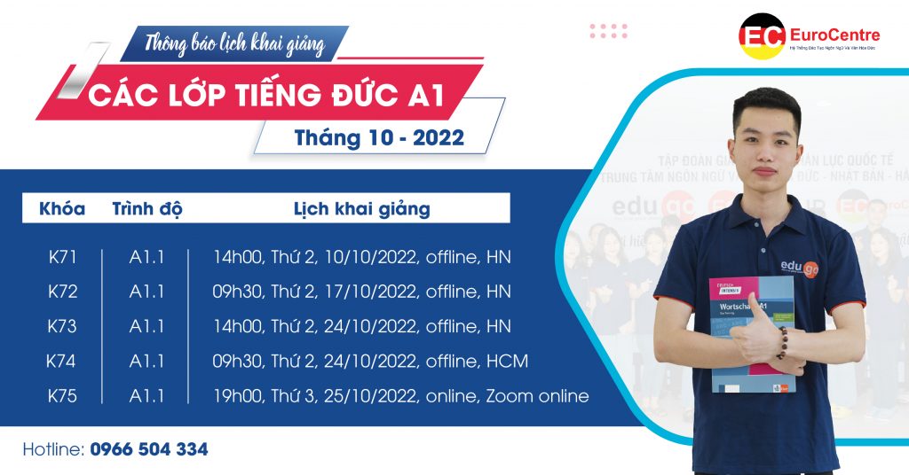 EuroCentre thông báo lịch khai giảng các lớp tiếng Đức trình độ A1 tháng 10/2022