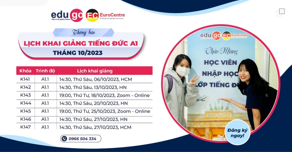 EuroCentre thông báo lịch khai giảng các lớp tiếng Đức trình độ A1 tháng 10/2023